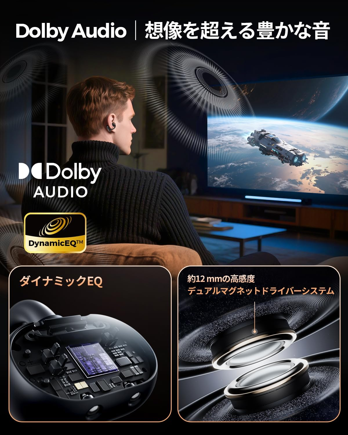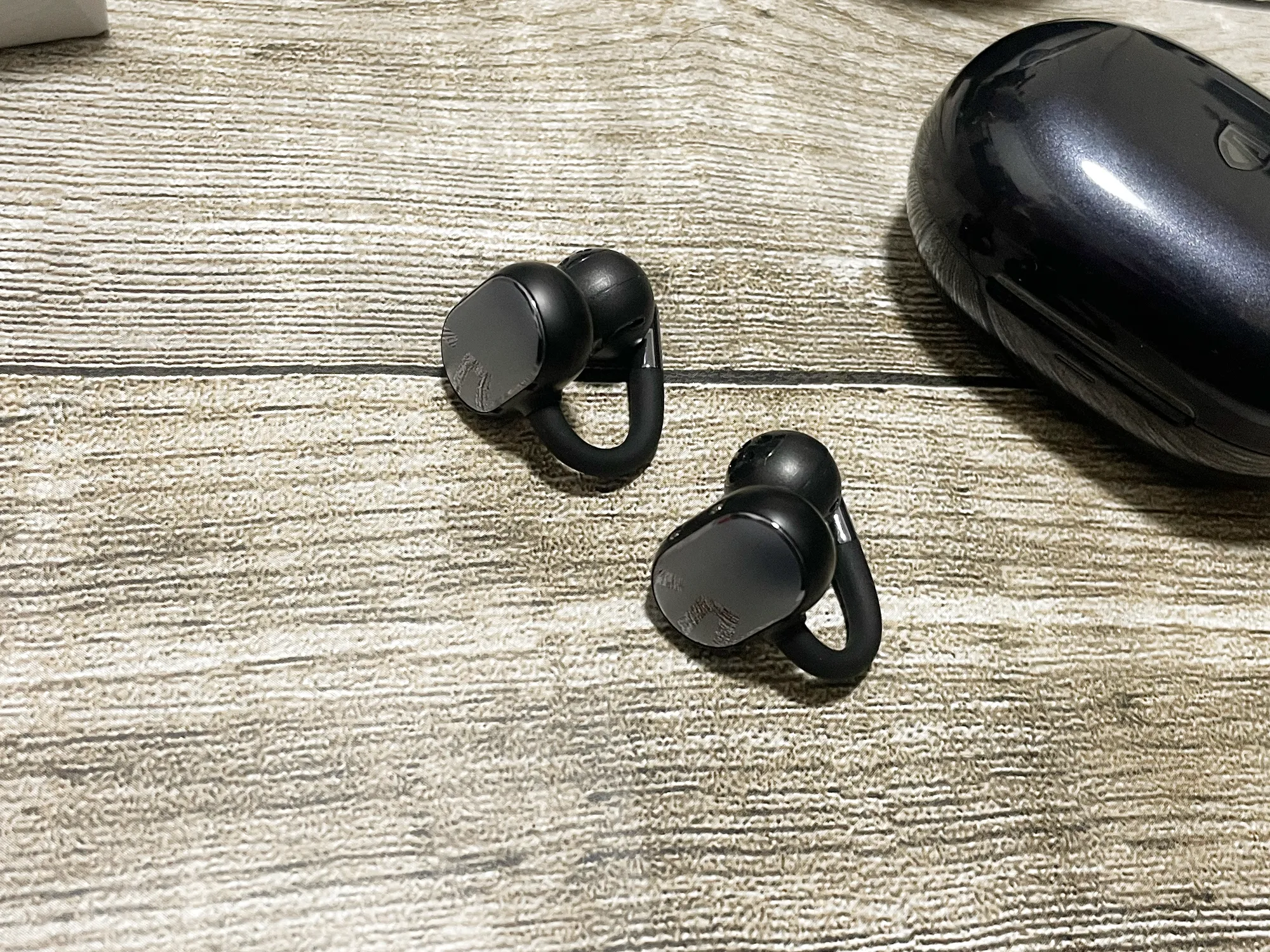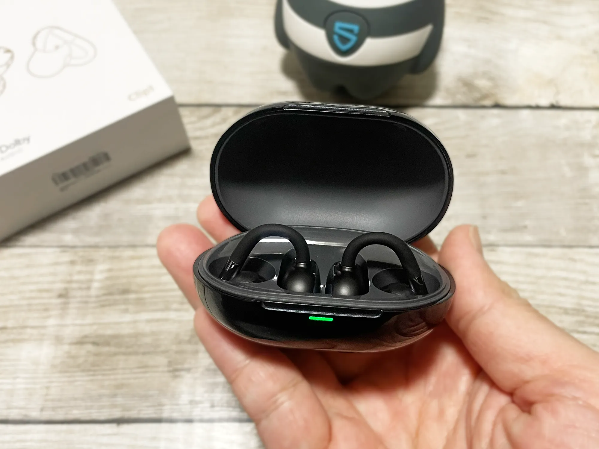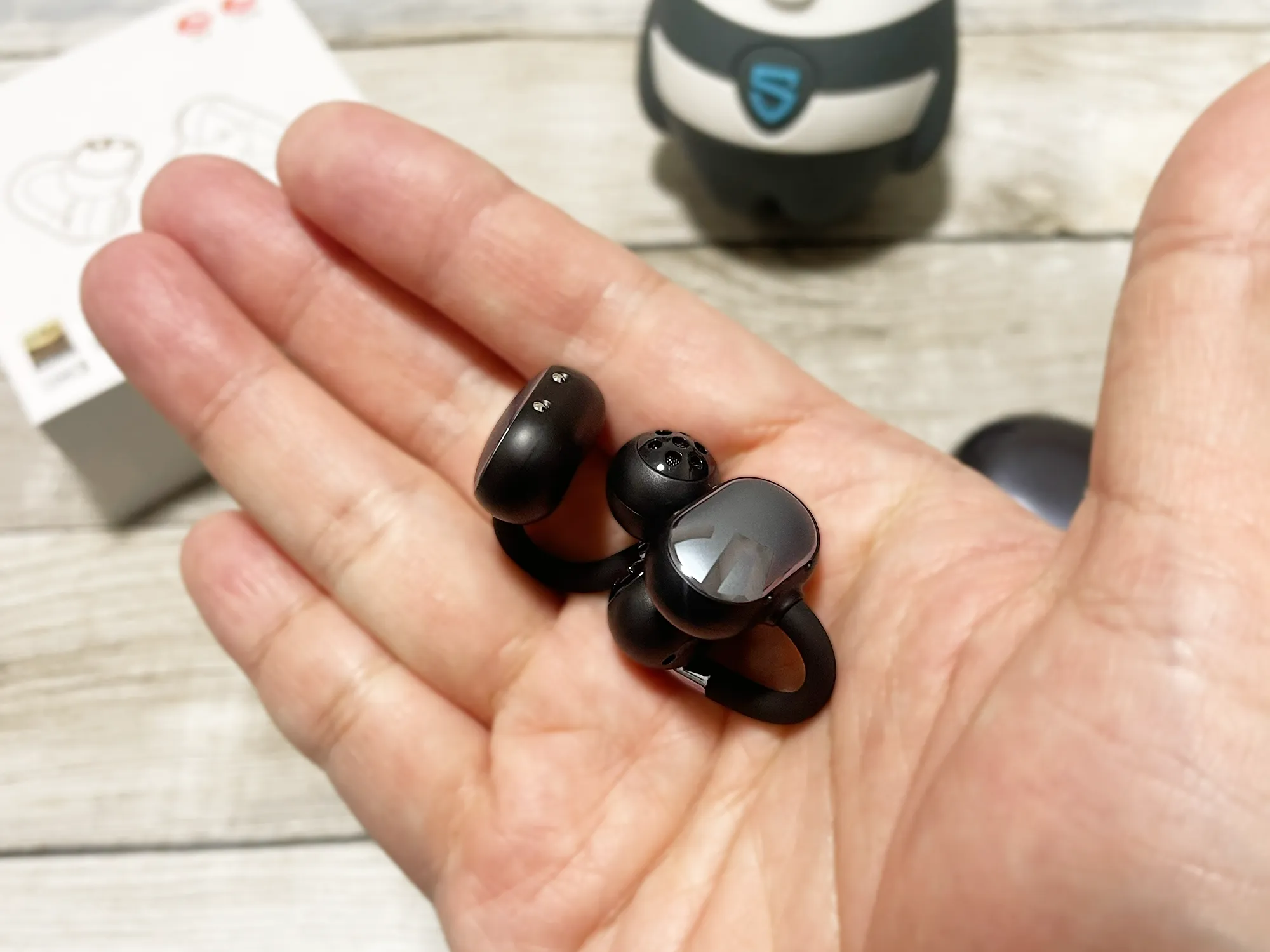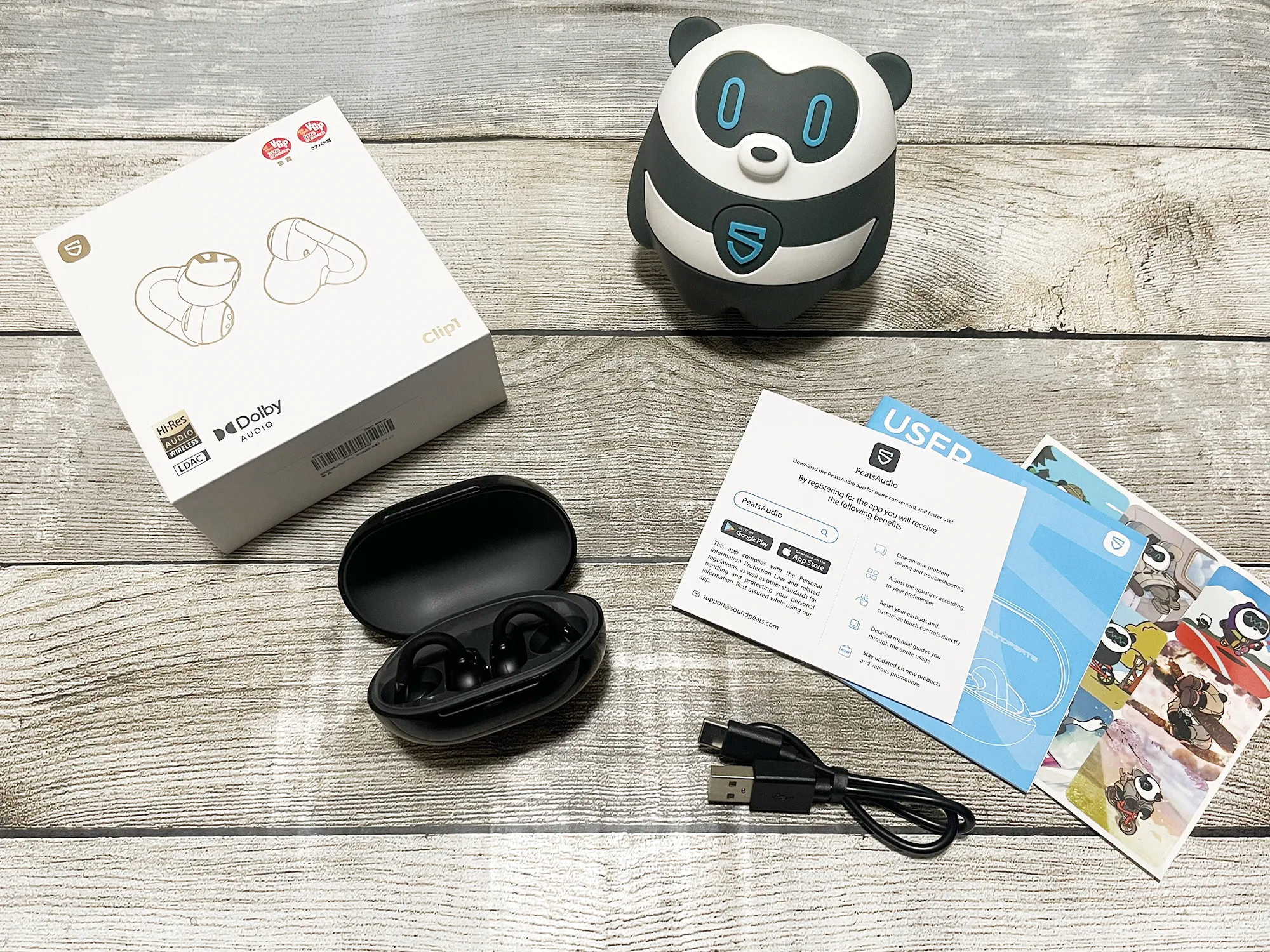 SOUNDPEATS『Clip1』レビュー 耳掛け・イヤーカフ型ながら高音質を実現した完全ワイヤレスイヤホン【製品提供記事】 SOUNDPEATS『Clip1』レビュー 耳掛け・イヤーカフ型ながら高音質を実現した完全ワイヤレスイヤホン【製品提供記事】 評価:4 黒野でみを 公開:2026年3月2日(2時間前) コメント 0件 ハードウェアレビューBluetoothイヤホン・ヘッドホンガジェットレビュー製品情報製品提供記事 Post X Share Facebook B! はてブ LINE 当記事の内容および記事中のリンクには、広告目的や当サイトが収益を得るためのものが含まれており、これらの収益によってuzurea.netは運営されています。 当サイトでは度々レビューしているSOUNDPEATS(サウンドピーツ)が、2025年11月頃に発売した、イヤーカフ型ワイヤレスイヤホン『Clip1』。 先日、同製品をご提供いただきましたので、外観やスペックのチェック、特徴・体感音質などふくめてレビューをしていきたいと思います。 記事の索引1 SOUNDPEATS『Clip1』 イヤーカフ型ワイヤレスイヤホン実機レビュー1.1 参考 『CCイヤーカフ』と『Clip1』のスペック比較1.2 『Clip1』パッケージ内容1.3 イヤホン本体の外観・デザイン1.4 イヤホンのサイズと装着感1.5 操作関連1.6 音質レビュー1.7 専用アプリ『PeatsAudio』で操作カスタマイズやイコライジングも可能1.8 SOUNDPEATS『Clip1』 製品スペック2 まとめ 総合評価 SOUNDPEATS『Clip1』 イヤーカフ型ワイヤレスイヤホン実機レビュー SOUNDPEATS『Clip1』は、耳たぶに掛けるように装着して使うイヤーカフ型イヤホン。昨年ごろから急速に需要が増え、ワイヤレスイヤホン製造各社がこぞって力を入れている耳の穴をふさがないで使うタイプのイヤホンです。 SOUNDPEATS『Clip1』 本製品は、音質に加えて近年増加している…… 耳を塞がない メガネやマスクと干渉しない 軽量 ファッション性 といった要望に応えるべくデザインされた製品とのこと。 同社のイヤーカフ型製品としては、初代の『CCイヤーカフ』、そのコストダウン版ともいえる『UUイヤーカフ』といったラインナップを販売してきたSOUNDPEATS。 今回の『Clip1』は形状的には『UUイヤーカフ』に近く、これを『CCイヤーカフ』のようなハイスペック仕様で仕上げた、という印象の製品です。 詳しいレビューは後半に記載していますが、本製品の特徴を数点に絞ると…… メガネやマスクと干渉しにくい装着感 オープンイヤー型とは思えない高音質、Dolby Audioに対応 単体8時間・合計40時間再生と、イヤーカフ型としてはトップクラスのバッテリー性能 装着感も◎、実売1万円以下のイヤーカフ型イヤホンを探すなら有力候補 といった所でしょうか。総じて、オープンイヤー型、クリップ型のイヤホンに興味がある方にはおすすめできる製品です。 SOUNDPEATS (サウンドピーツ) Clip1 イヤーカフ ワイヤレスイヤホン オープンイヤーイヤホン LDAC/ハイレゾ/Dolby Audio/最大40時間再生/Bluetooth5.4 マルチポイント接続 専用アプリ IPX5 クリップ式 軽量 開放型 耳挟み式 耳を塞がないイヤホン【VGP2025 SUMMER コスパ大賞】チタンブラック SoundPEATS(サウンドピーツ) ¥7,984 (2026/3/2 4:24:48時点 Amazon調べ-詳細) Amazonでのレビューを見る Amazonで検索 楽天市場で検索 Yahoo!ショッピングで検索 メルカリで検索 参考 『CCイヤーカフ』と『Clip1』のスペック比較 詳しレビューの前にもうひとつ、以前当サイトでもレビューした『CCイヤーカフ』との性能比較をしておきましょう。対応コーデックにLDACが追加された点や、ダイナミックドライバーにチタンPVDコーティングが施された点が主な強化ポイントです。一方、対応BluetoothバージョンはBluetooth 6.0から5.4にグレードダウンしていますが、音質重視の観点から実用への影響が少ない部分を割り切った仕様変更とみられます。 イヤホン単体での再生時間はフル充電で8時間連続再生とのびており、充電ケース併用で合計40時間と、かなりの長時間利用が可能になっています。 スペックCC イヤーカフClip1ドライバーサイズ12mm12mm形状イヤーカフ型完全ワイヤレスイヤホンイヤーカフ型完全ワイヤレスイヤホン対応コーデックAAC/SBCSBC/AAC/LDAC対応Bluetooth バージョンBluetooth6.0Bluetooth5.4サウンドドライバー12mmデュアルマグネットダイナミックドライバー×112mmデュアルマグネットダイナミックドライバー(チタンPVDコーティング)サイズ(L×W×H)72.21×24.15×45.53mm(ケース込み)71.5×49×35mm(ケース込み)重量約5g(イヤホン/片側)約47.34g(充電ケース+イヤホン両側)約5g(イヤホン/片側)約55.5g(充電ケース+イヤホン両側)マルチポイント対応対応対応防水規格IPX5IPX5イヤホン(片耳)の再生可能時間6時間8時間充電ケースを含んだ再生時間24時間40時間ゲームモード対応対応ムービーモード対応Dolby Audio対応特徴左右チャンネル自動適応左右チャンネル自動適応落下検出対応Amazon 販売ページCC イヤーカフClip1 SOUNDPEATS CCイヤーカフ のレビュー記事はこちら 『Clip1』パッケージ内容 ではやっと本題。Clip1のパッケージ外観、同梱物などをチェックしてきましょう。 『Clip1』パッケージ内