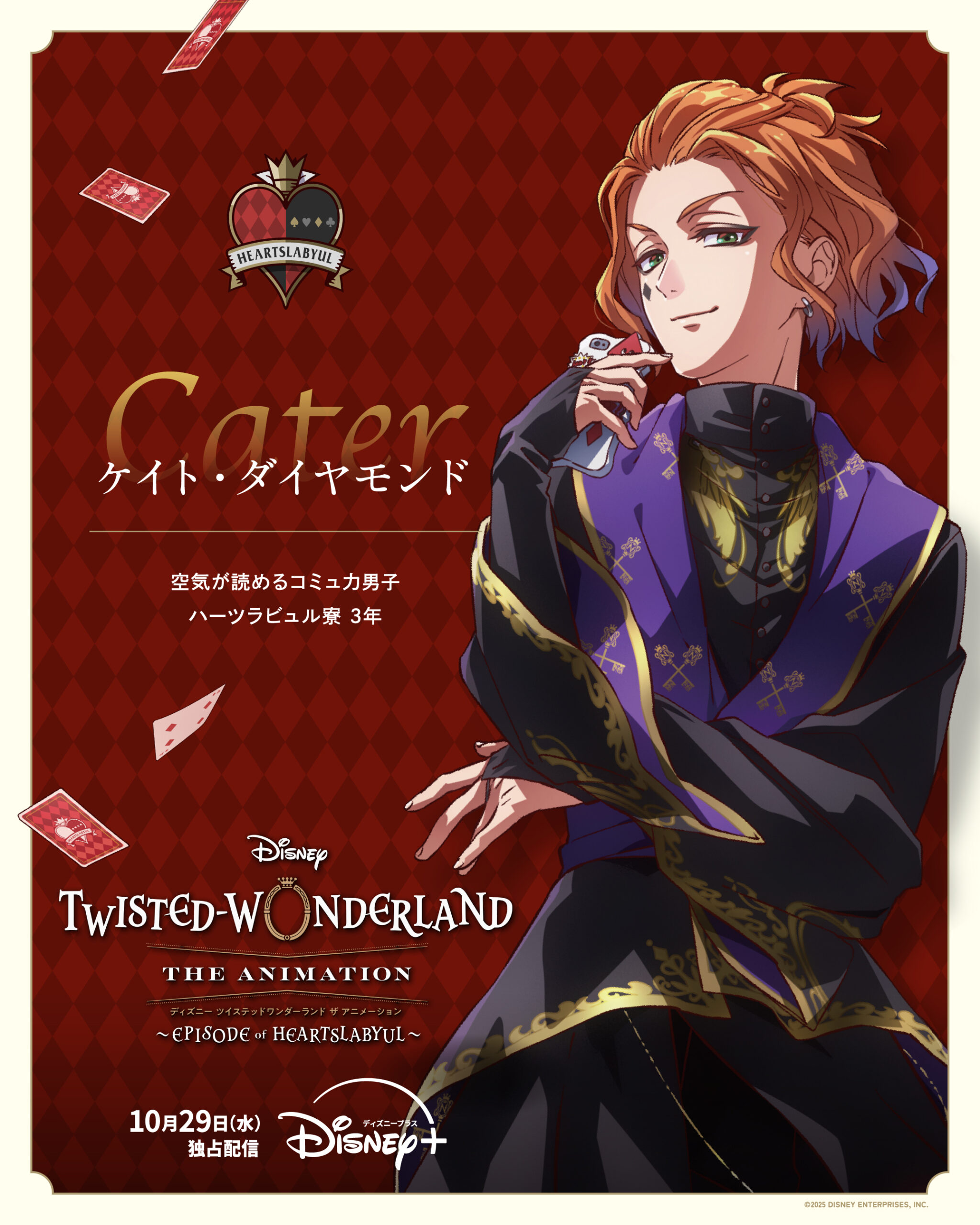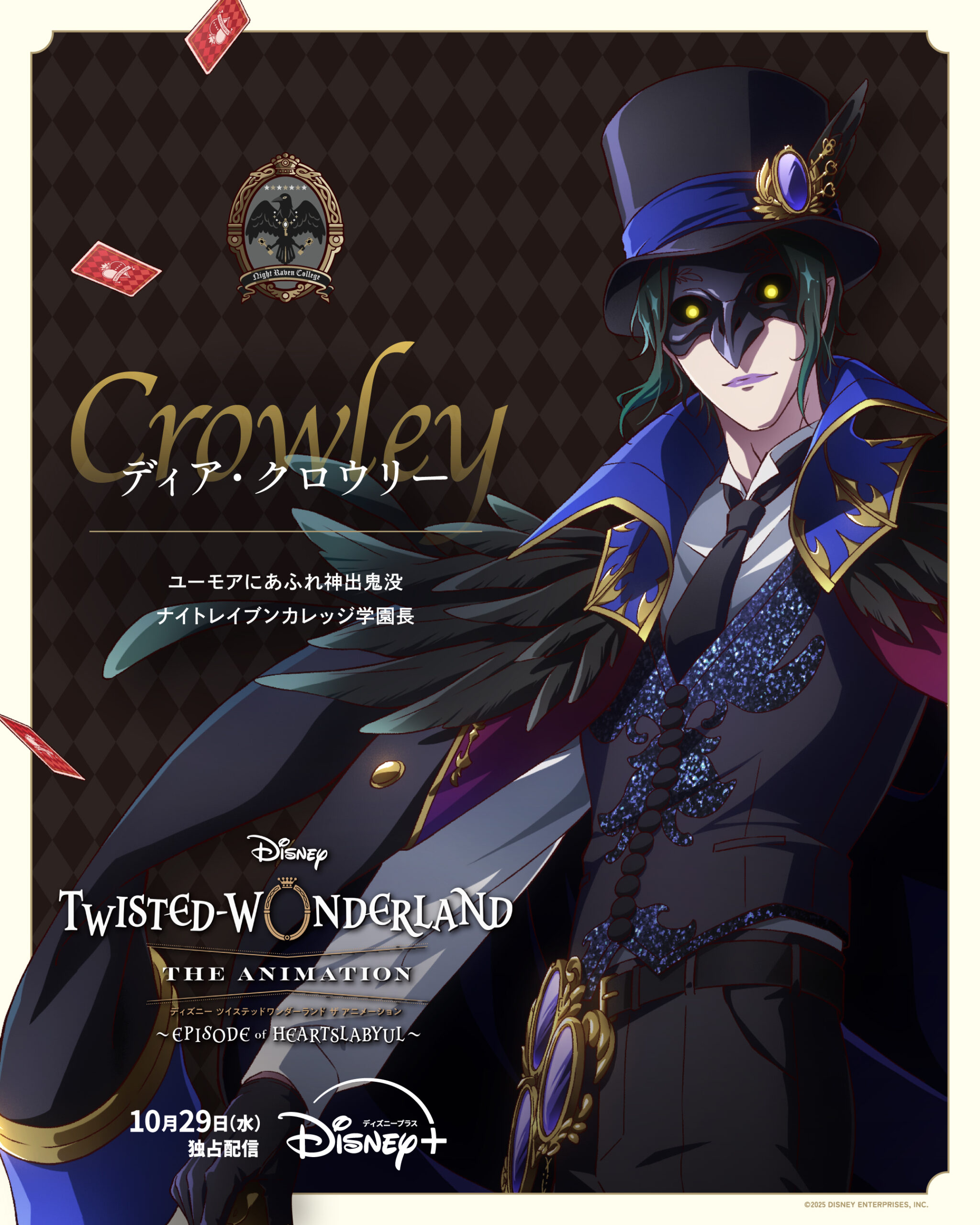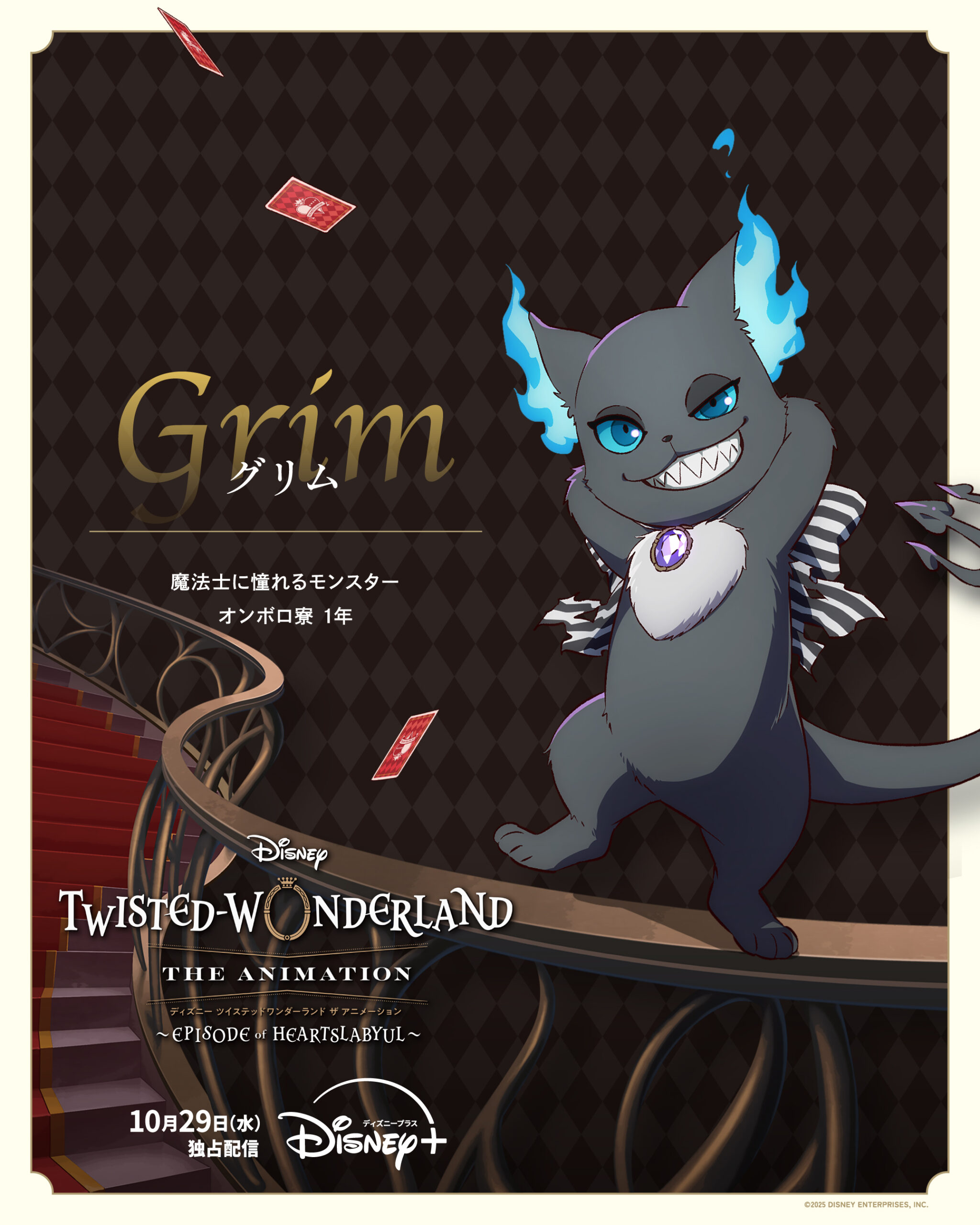 ストーリーツイステッドワンダーランド、そこは魔法が存在する世界。その世界にかつて実在し、“伝説”として語り継がれる偉大なる存在が「グレート・セブン>」ハートの女王、百獣の王、海の魔女、砂漠の魔術師、美しき女王、死者の国の王、茨の魔女、7つの“伝説”は今もなお息づいている。そんなツイステッドワンダーランドにおいて、「グレート・セブン」に倣った7つの寮を擁する名門魔法士養成学校が「ナイトレイブンカレッジ」である。 各寮を束ねる7寮長の一人がハートの女王の厳格な精神に基づくハーツラビュル寮の寮長・リドル・ローズハート。“真紅の暴君”と称されるリドルは、寮生たちを“ハートの女王の法律”によって厳格に支配し苦しめている。そんな中、入学式を迎えたある日、現実世界に暮らす男子高校生・円満雄剣がツイステッドワンダーランドに迷い込んでしまう。果たして、雄剣は元の世界に戻ることができるのか。 画像 動画 スタッフ 総監督・シリーズ構成:名取孝浩 監督:片貝慎 メインライター:加藤陽一 キャラクターデザイン:中野花香・佐藤茜 サブキャラクターデザイン:つなきあき 色彩設計:安部なぎさ 美術監督:松本浩樹 3DCGディレクター:大矢和也 撮影監督:サイトウタカオ 編集:瀧川三智 音響監督:菅原三穂 音楽:尾澤拓実 音楽制作:アニプレックス オープニングテーマ:Night Ravens「Piece of my world」 アニメーション制作:ゆめ太カンパニー×グラフィニカ キャスト リドル・ローズハート:花江 夏樹 エース・トラッポラ:山下 誠一郎 デュース・スペード:小林 千晃 トレイ・クローバー:鈴木崚汰 ケイト・ダイヤモンド:小林竜之 ディア・クロウリー:宮本 充 グリム:杉山 紀彰 円満雄剣:阿座上洋平 レオナ・キングスカラー:梅原 裕一郎 ジャック・ハウル:坂 泰斗 ラギー・ブッチ:市川 蒼 アズール・アーシェングロット:田丸 篤志 ジェイド・リーチ:駒田 航 フロイド・リーチ:岡本 信彦 カリム・アルアジーム:古田 一紀 ジャミル・バイパー:二葉 要 ヴィル・シェーンハイト:相葉 裕樹 エペル・フェルミエ:土屋 神葉 ルーク・ハント:糸川 耀士郎 イデア・シュラウド:内山 昂輝 オルト・シュラウド:蒼井 翔太 マレウス・ドラコニア:加藤 和樹 リリア・ヴァンルージュ:緑川 光 シルバー:島﨑 信長 セベク・ジグボルト:石谷 春貴 デイヴィス・クルーウェル:伊東 健人 モーゼズ・トレイン:小山 力也 アシュトン・バルガス:竹内 良太 サム:木村 昴 闇の鏡:堀内 賢雄 チェーニャ:濱 健人 主題歌・挿入歌オープニングテーマで「Piece of my world」Night RavensAmazonで検索エンディングテーマ「Obedience」ハーツラビュル寮生Amazonで検索