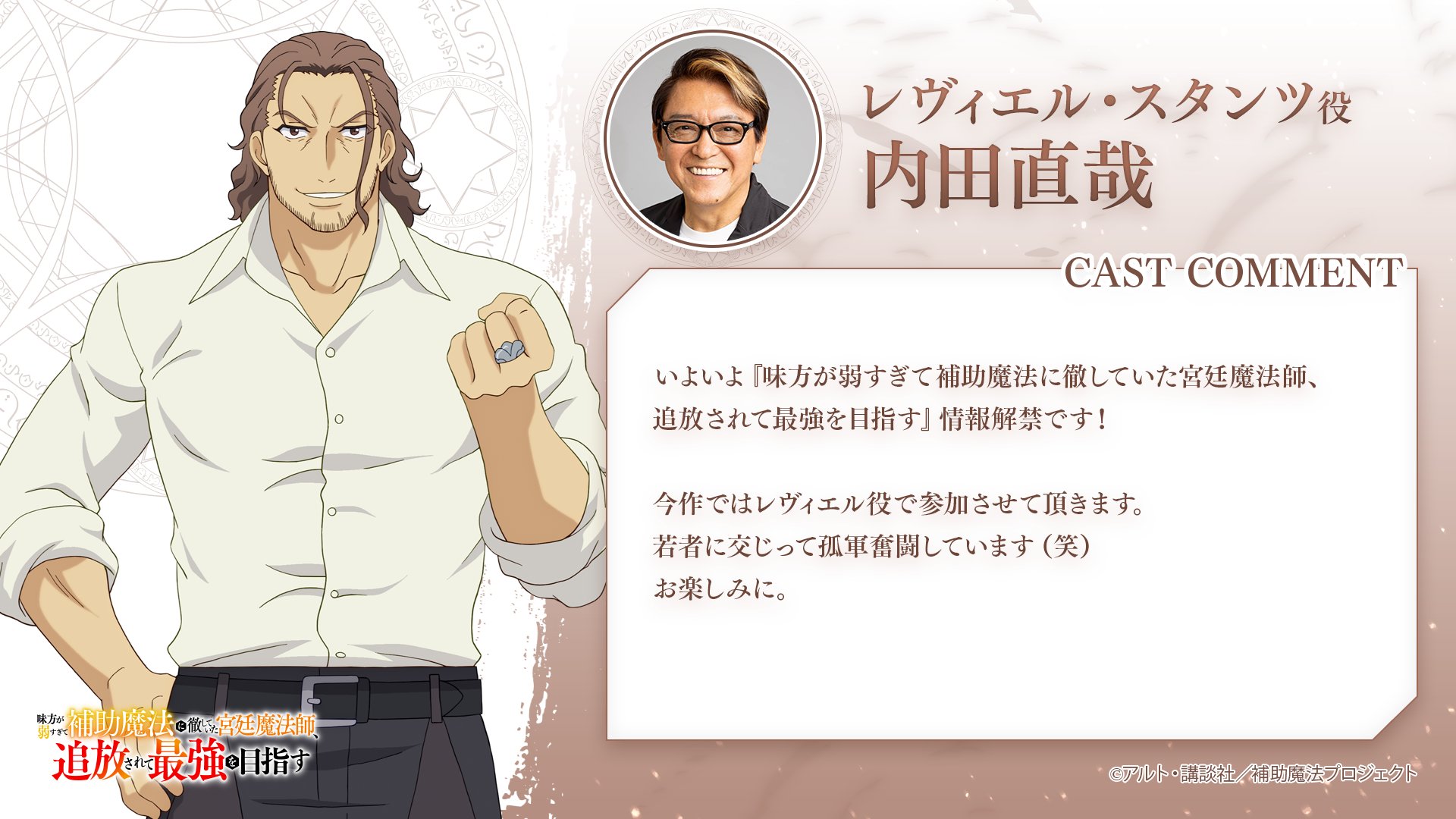 原作:アルト『味方が弱すぎて補助魔法に徹していた宮廷魔法師、追放されて最強を目指す』(講談社Kラノベブックス刊)