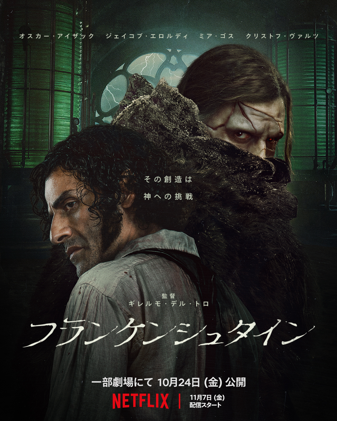 ストーリー優秀だが傲慢な科学者ヴィクター・フランケンシュタイン博士は、恐ろしい実験によって怪物に命を吹き込むことに成功する。しかし、博士と悲劇の怪物を待っていたのは破滅への道だった。 画像 動画 スタッフ 監督:ギレルモ・デル・トロ 脚本:ギレルモ・デル・トロ 原作:メアリー・シェリー 製作:ギレルモ・デル・トロ、ゲイリー・アンガー、スコット・ステューバー、J・マイルズ・デイル 音楽:アレクサンドル・デスプラ 撮影:ダン・ローストセン 配給:Netflix キャスト ヴィクター・フランケンシュタイン:オスカー・アイザック 若き日のヴィクター・フランケンシュタイン:クリスチャン・コンヴェリー 怪物:ジェイコブ・エロルディ エリザベス・ラヴェンザ:ミア・ゴス ヘンリッヒ・ハーランダー:クリストフ・ヴァルツ アンダーソン船長:ラース・ミケルセン ウィリアム・フランケンシュタイン:フェリックス・カメラー レオポルド・フランケンシュタイン:チャールズ・ダンス クレア・フランケンシュタイン:ローレン・コリンズ 盲目の老人:デイビッド・ブラッドリー クレンペ教授:ラルフ・アイネソン フリッツ:バーン・ゴーマン 子供:ソフィア・ガラッソ ヴィクター・フランケンシュタイン(日本語吹替):加瀬康之 怪物(日本語吹替):星野貴紀