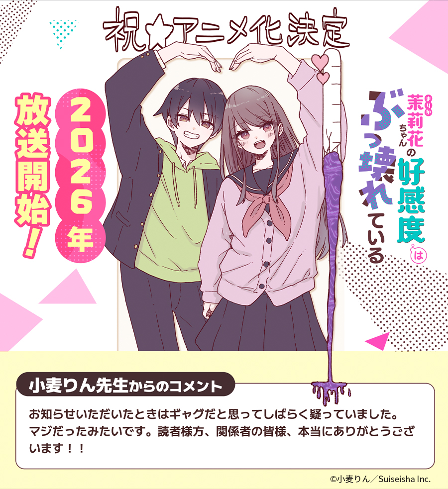 小麦りん 作『茉莉花ちゃんの好感度はぶっ壊れている』TVアニメ化企画進行中!!